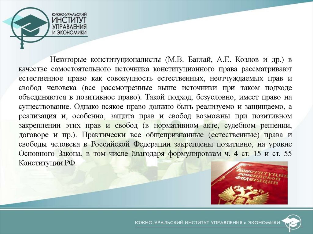 Основного Закона, в том числе благодаря формулировкам ч. 4 ст. 15 и ст. 55