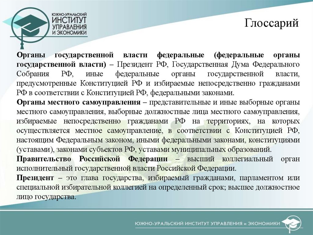 ГлоссарийОрганы государственной власти федеральные (федеральные органы