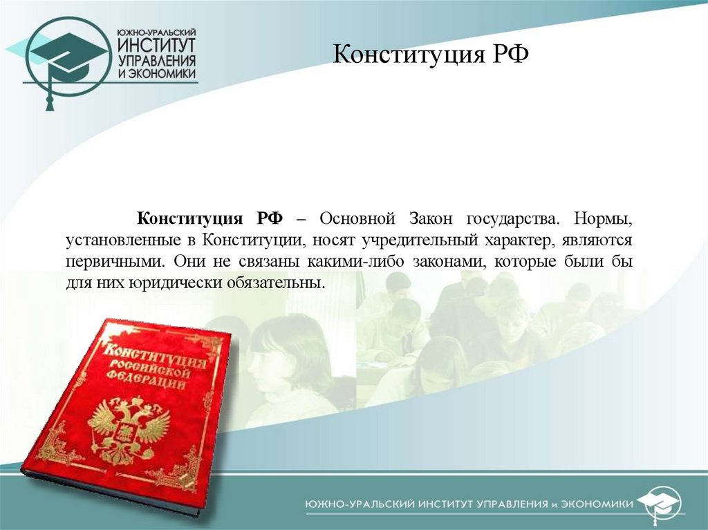 Конституция РФКонституция РФ – Основной Закон государства. Нормы,
