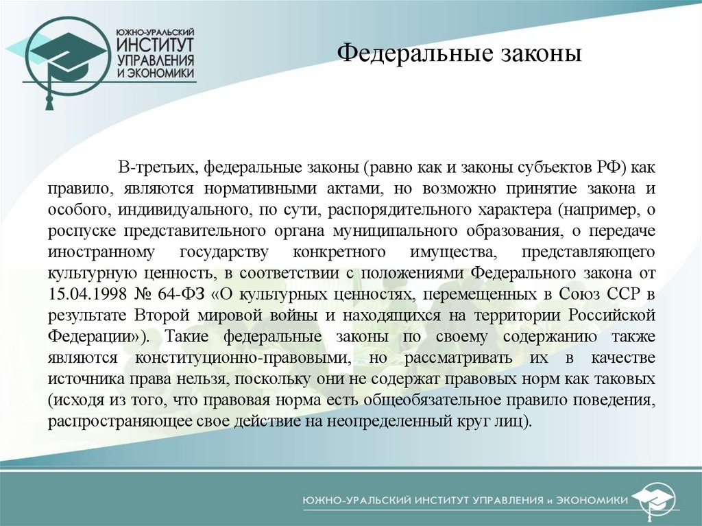 Федеральные законыВ-третьих, федеральные законы (равно как и законы субъектов РФ) как