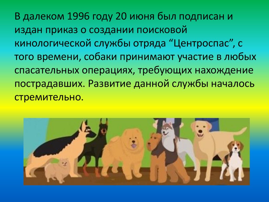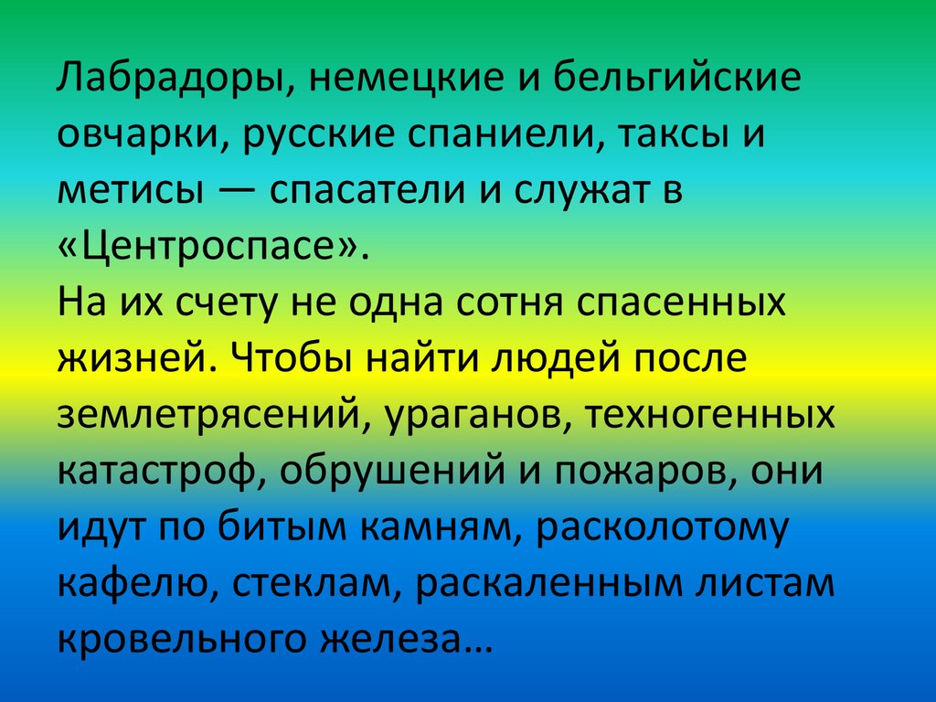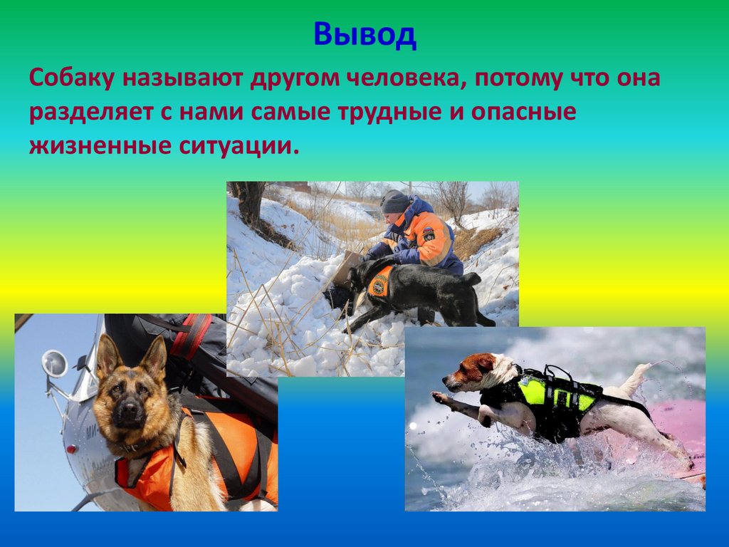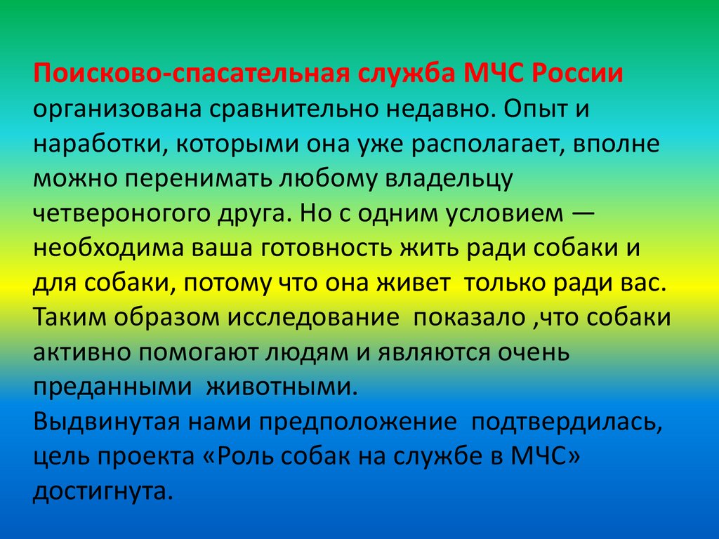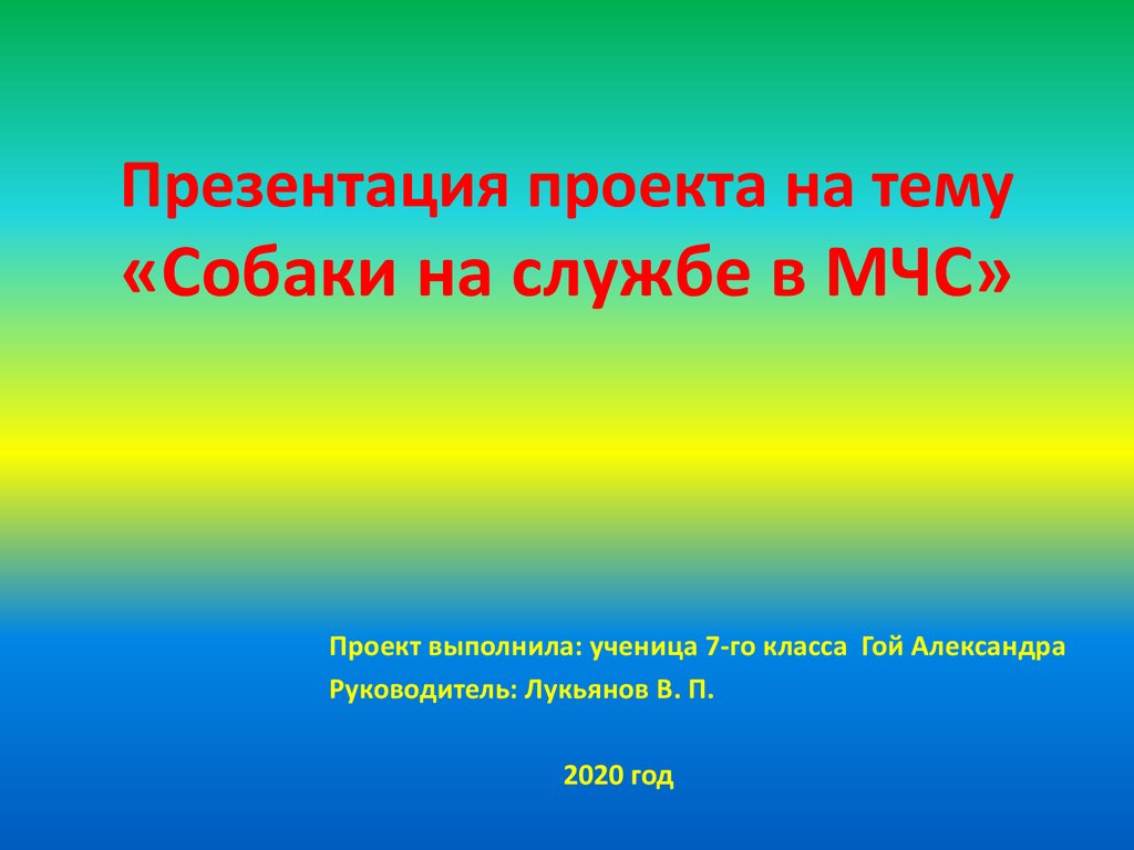 Презентация проекта на тему«Собаки на службе в МЧС»