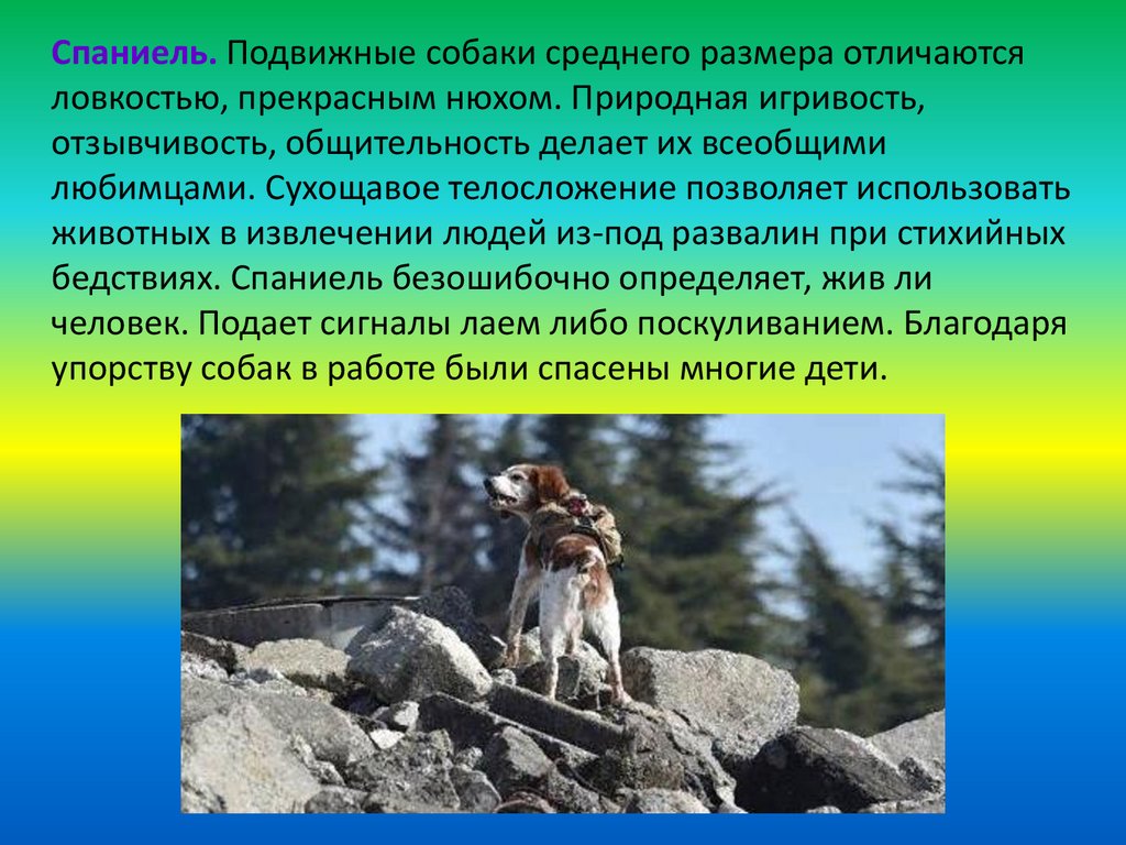 бедствиях. Спаниель безошибочно определяет, жив ли