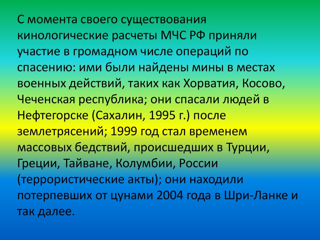 С момента своего существованиякинологические расчеты МЧС РФ приняли