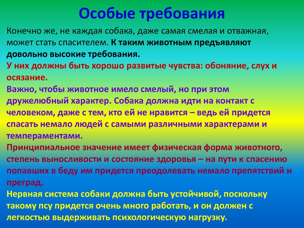 Особые требованияКонечно же, не каждая собака, даже самая смелая и отважная,