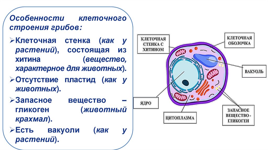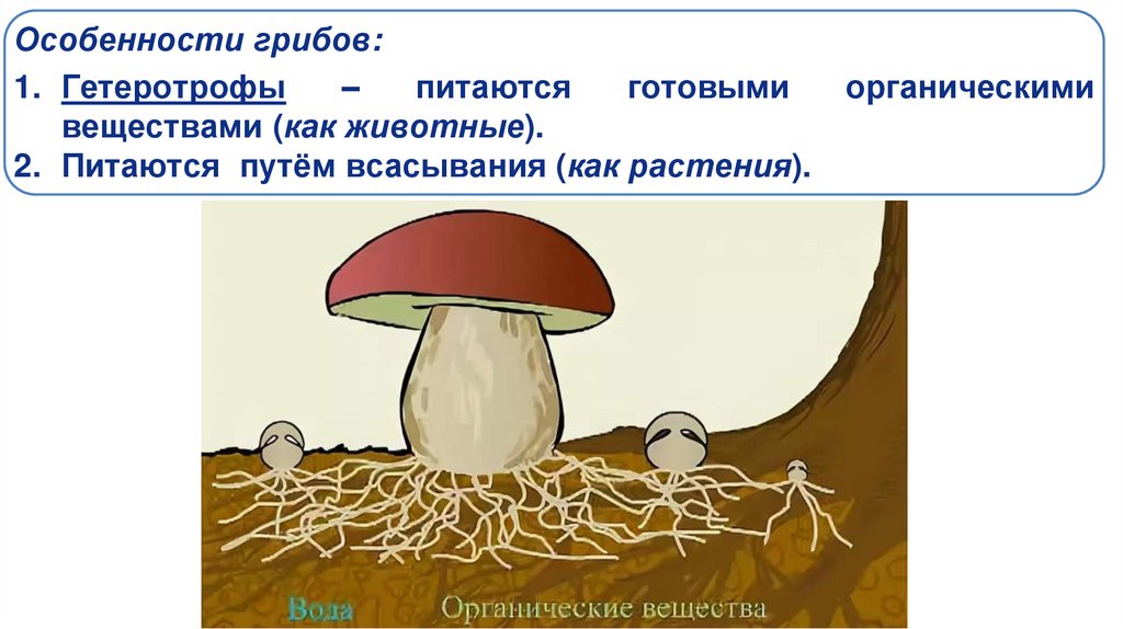 Особенности строения и жизнедеятельности грибов:Тело состоит из грибных нитей – гиф, которые переплетаются