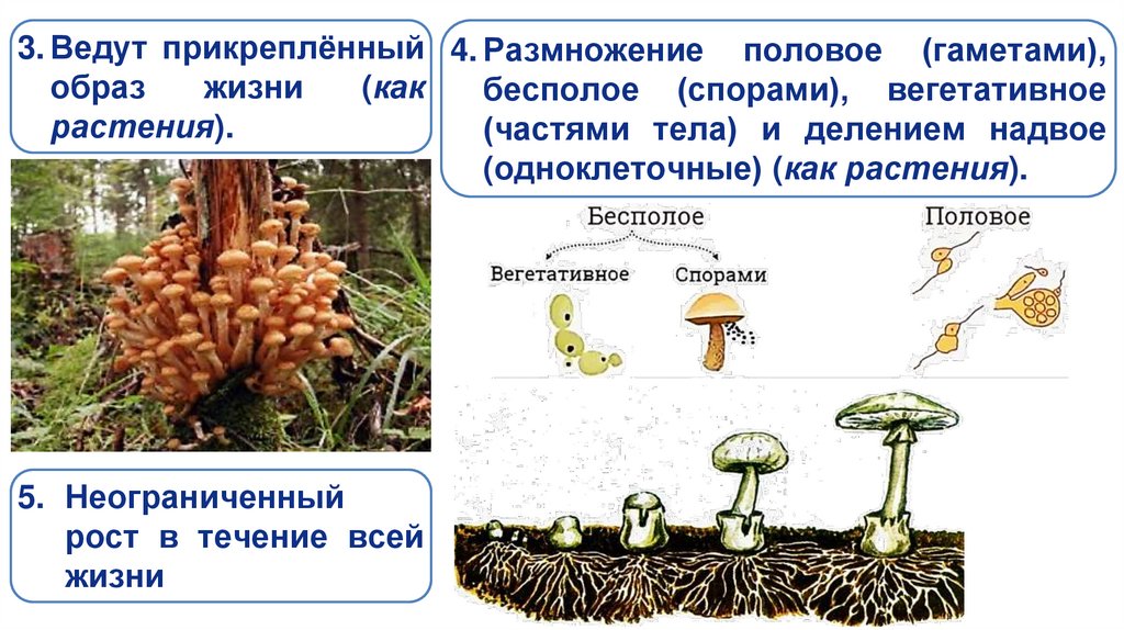3. Ведут прикреплённый 4. Размножение половое (гаметами),образ