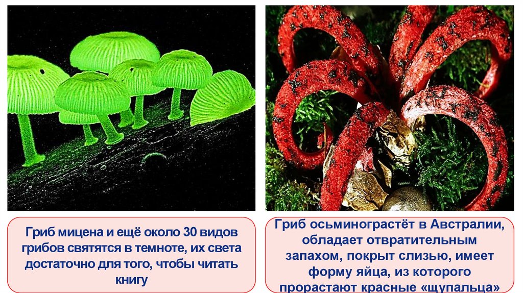 Гриб мицена и ещё около 30 видовгрибов святятся в темноте, их света
