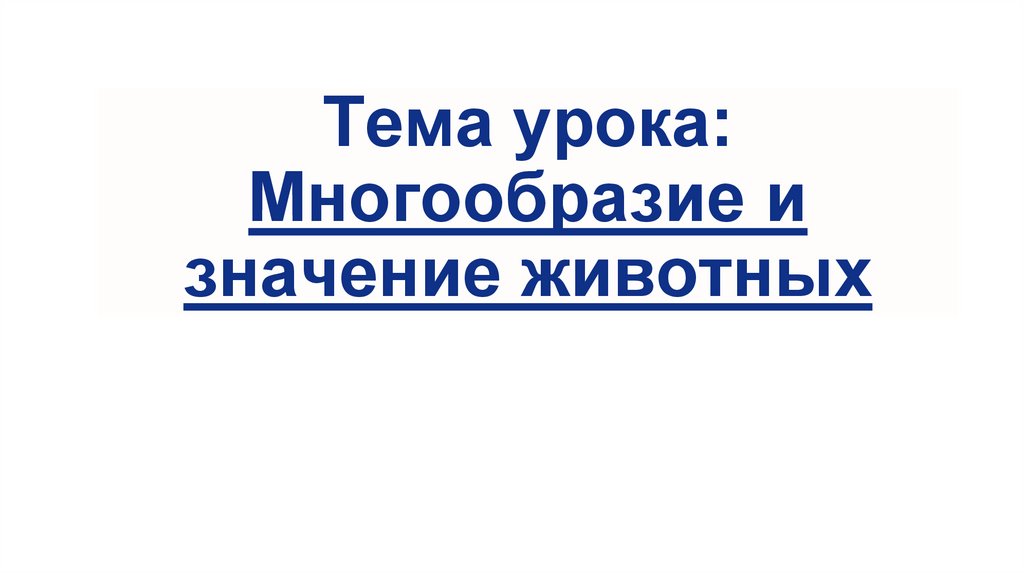 1. Тема урока: Многообразие и значение животных