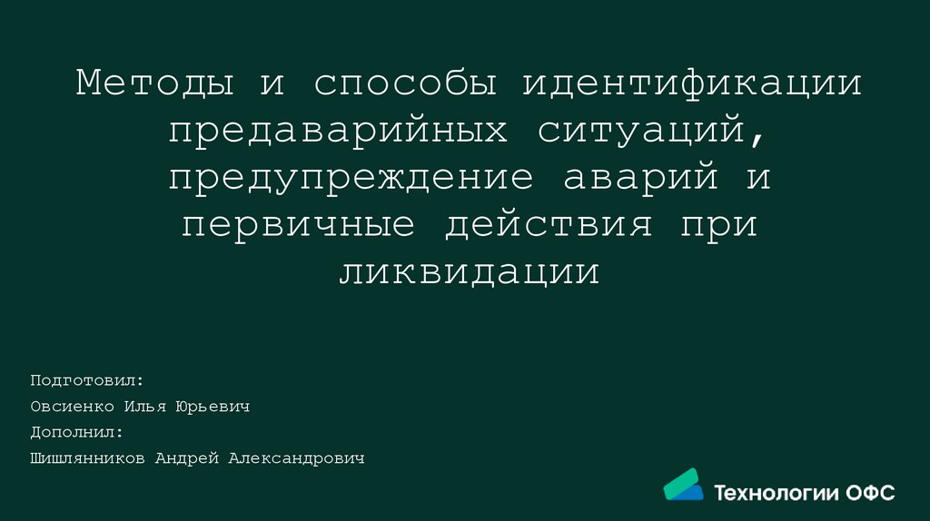 1. Методы и способы идентификации предаварийных ситуаций, предупреждение аварий и первичные действия при ликвидации