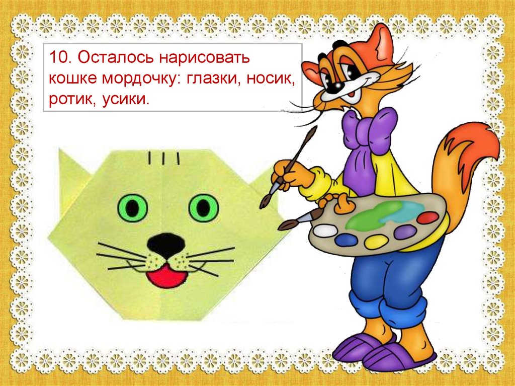 10. Осталось нарисоватькошке мордочку: глазки, носик,