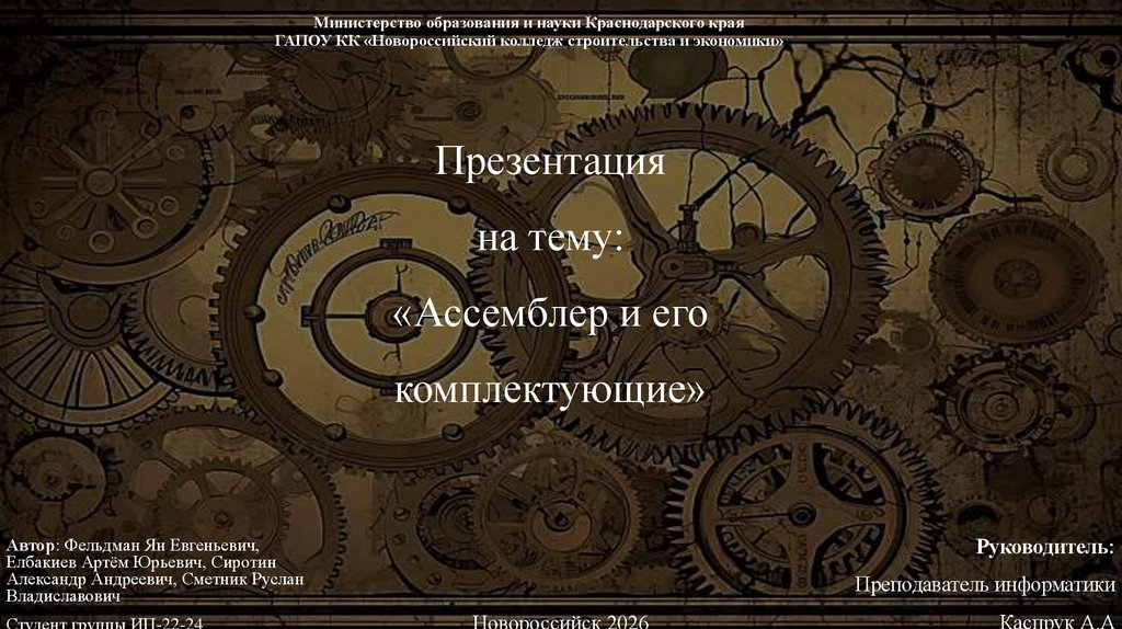 1. Министерство образования и науки Краснодарского края ГАПОУ КК «Новороссийский колледж строительства и экономики»