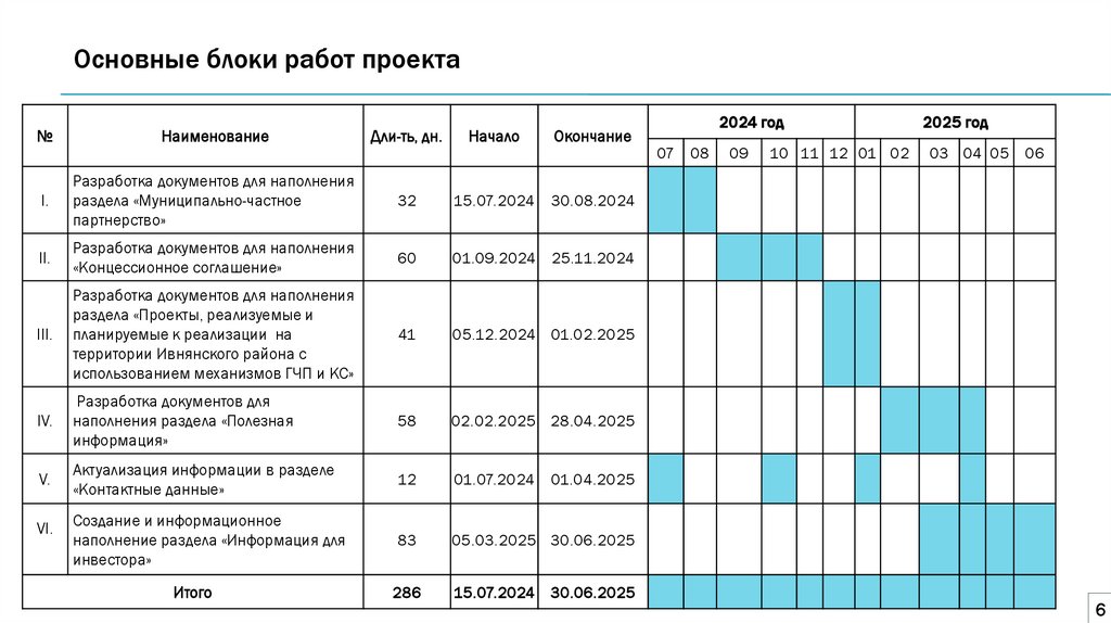 Основные блоки работ проекта№