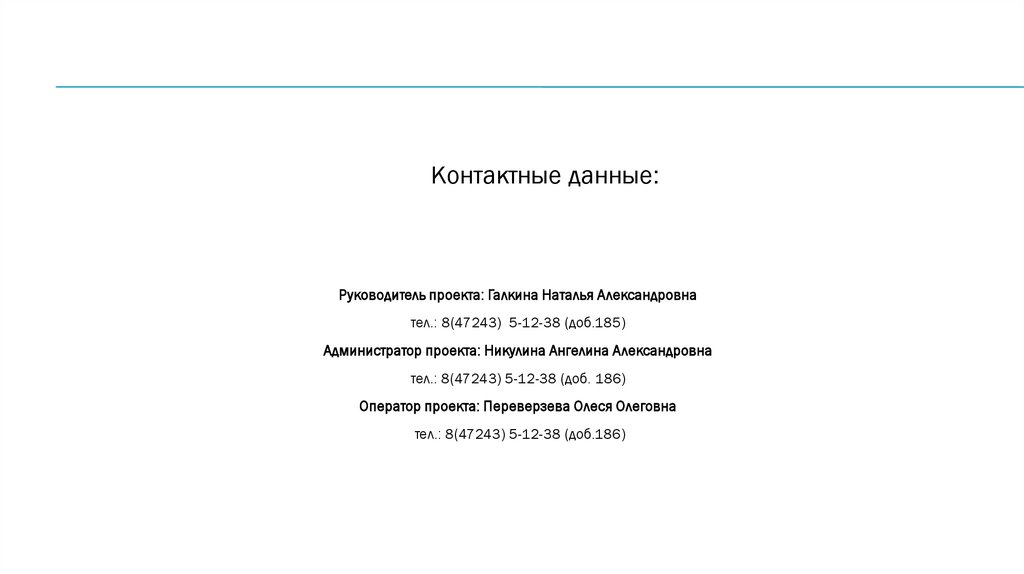 Контактные данные:Руководитель проекта: Галкина Наталья Александровна