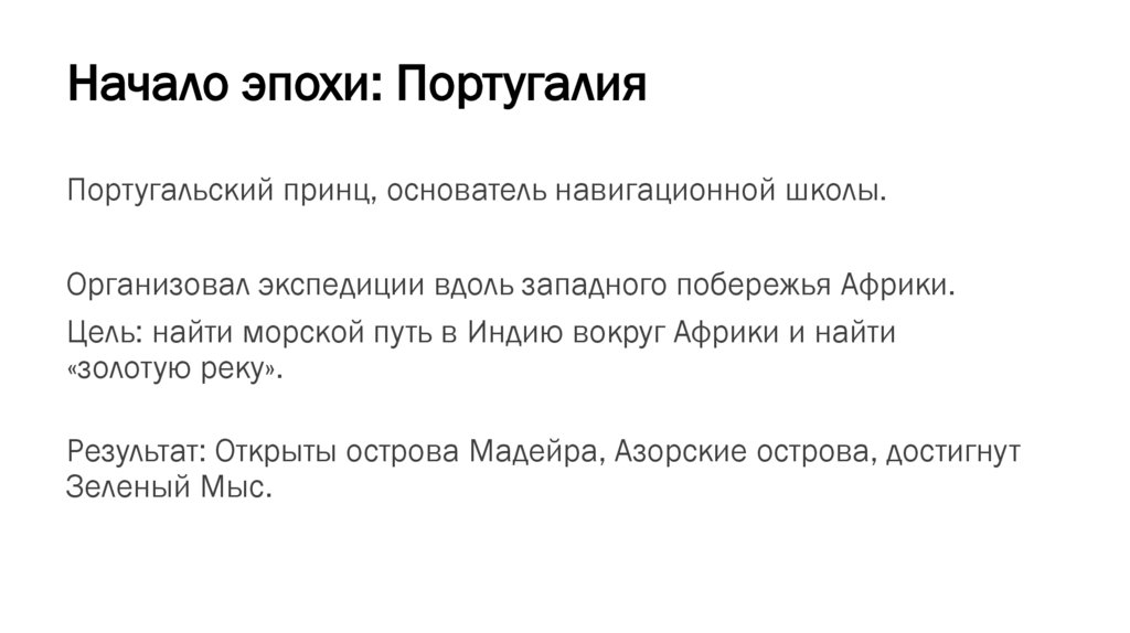 Результат: Открыты острова Мадейра, Азорские острова, достигнут