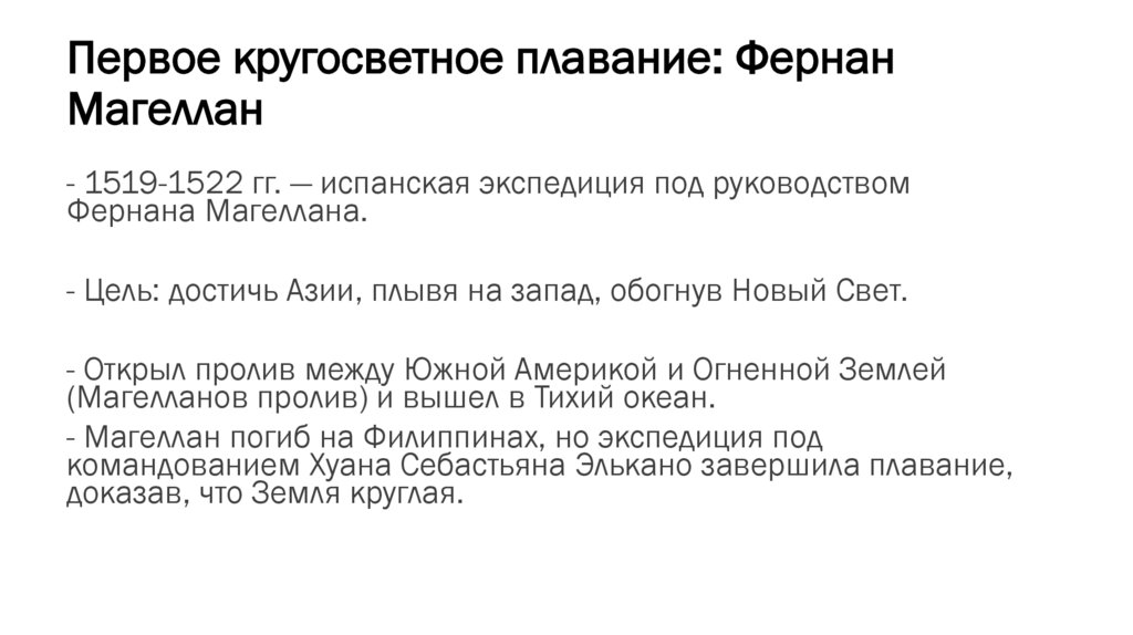 - 1519-1522 гг. — испанская экспедиция под руководством