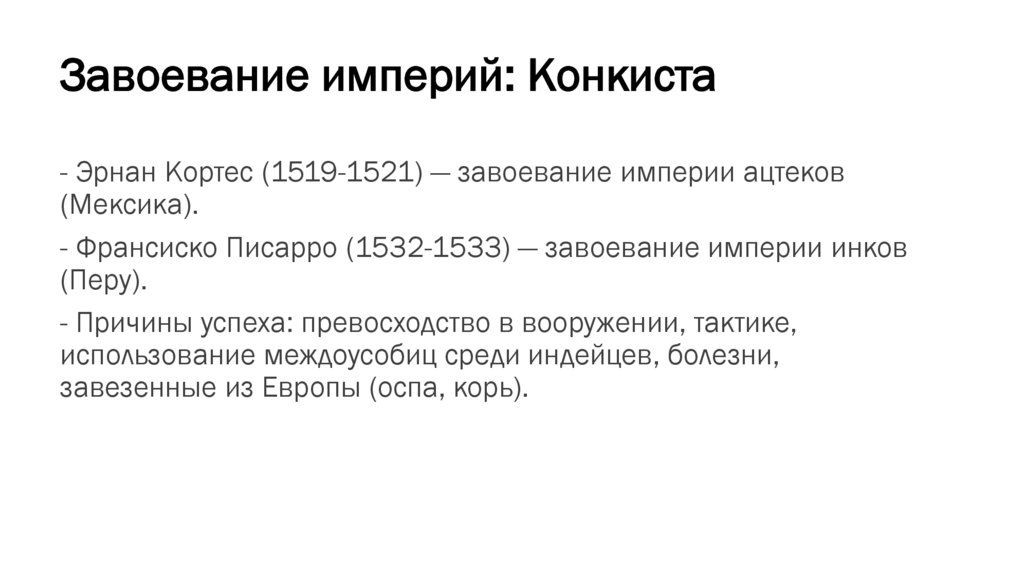 - Франсиско Писарро (1532-1533) — завоевание империи инков