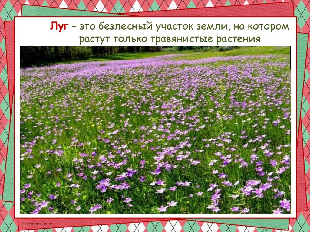 Луг – это безлесный участок земли, на которомрастут только травянистые растения