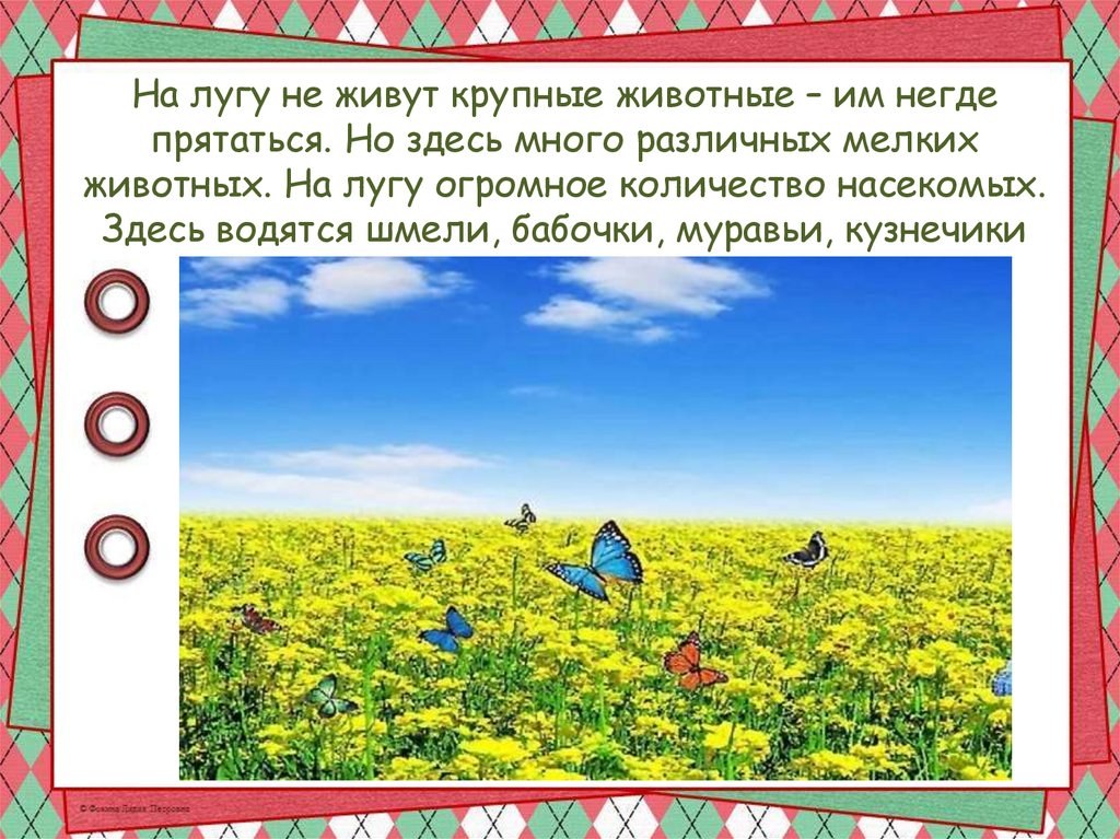 животных. На лугу огромное количество насекомых.