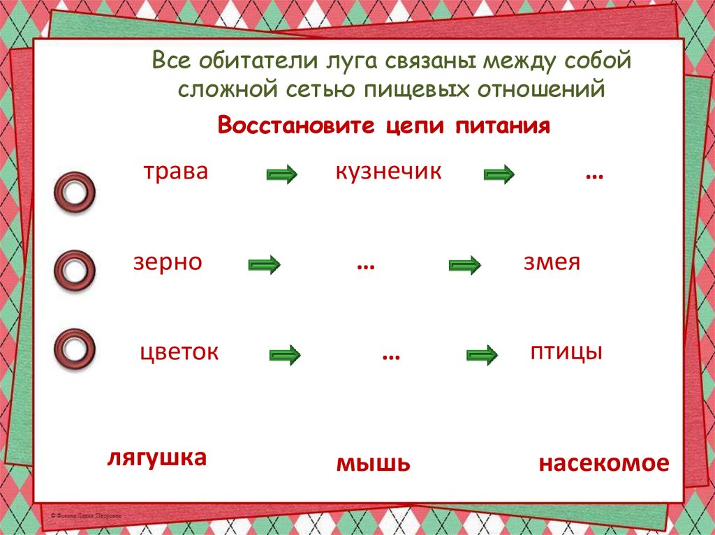 Все обитатели луга связаны между собойсложной сетью пищевых отношений
