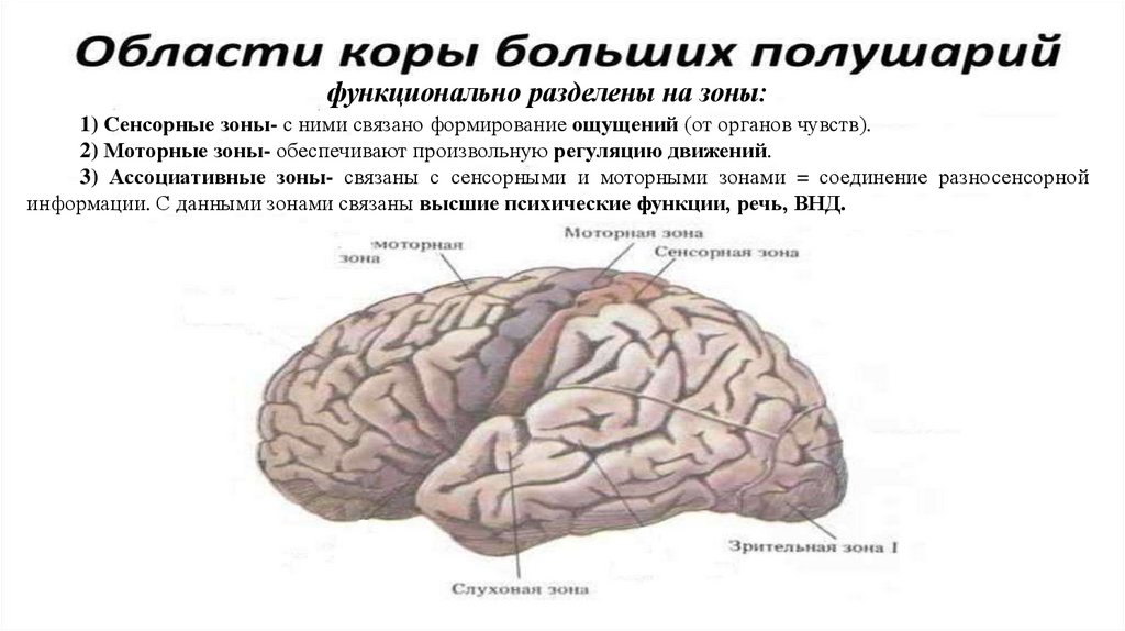 Зоны коры в которых происходит:1) анализ поступающей информации