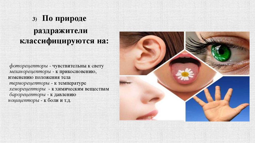 раздражителем (кожные, вкусовые,