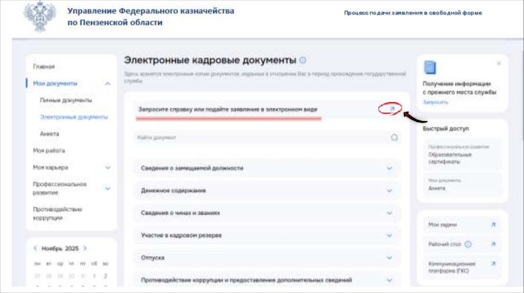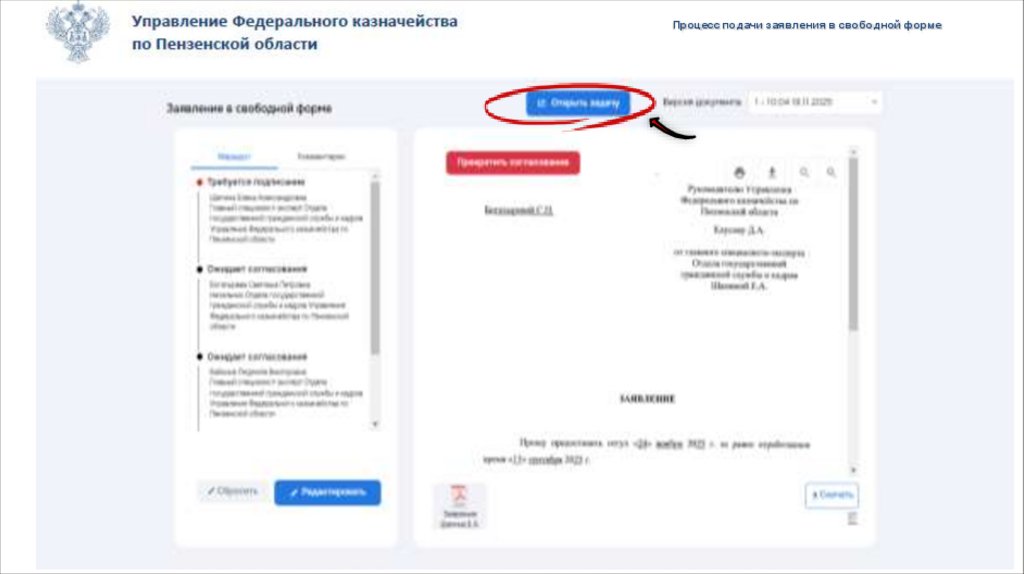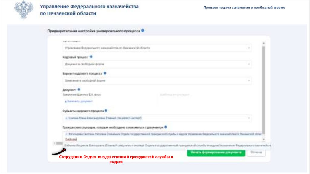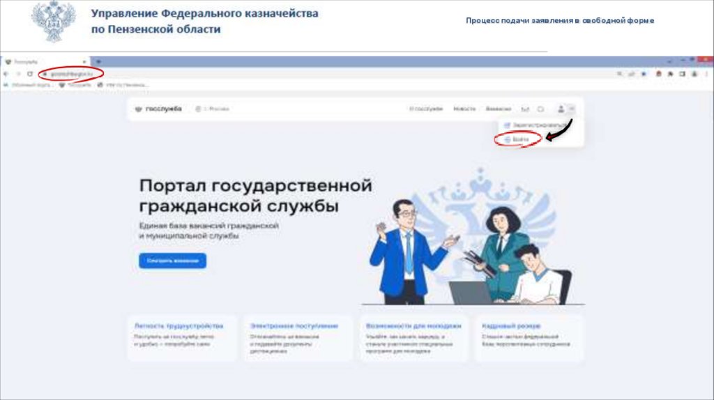 Процесс подачи заявления в свободной формеСотрудники Отдела государственной гражданской службы и