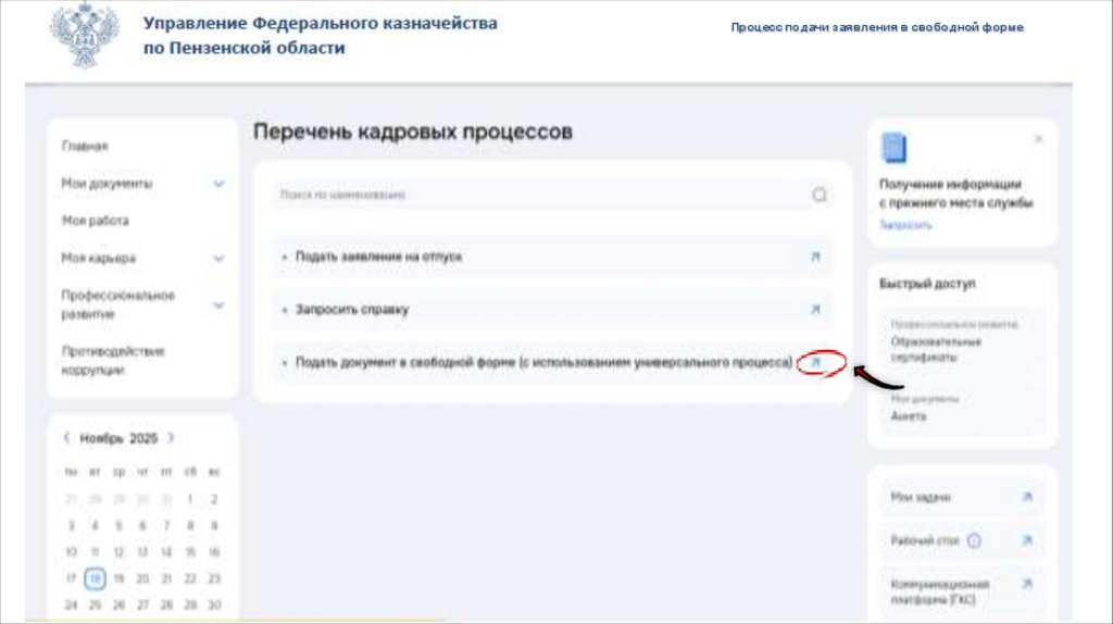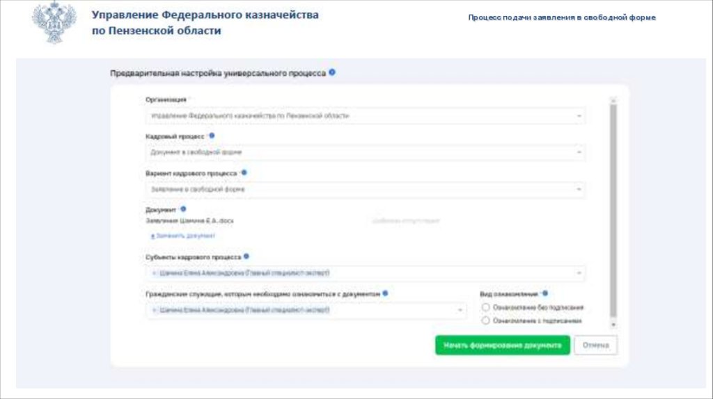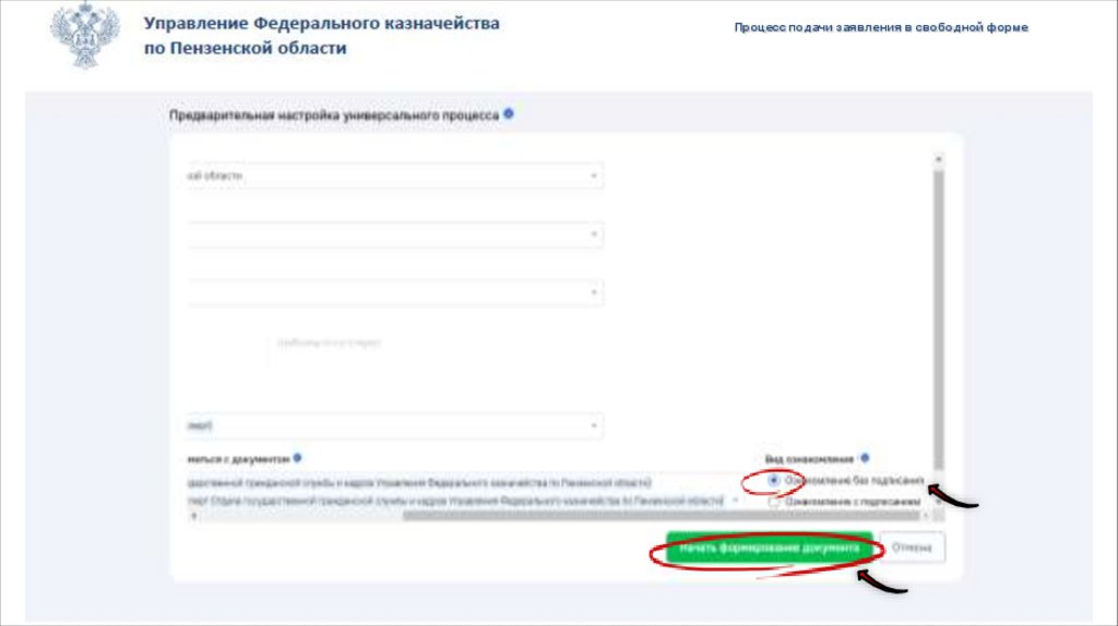Процесс подачи заявления в свободнойформе (с использованием универсального