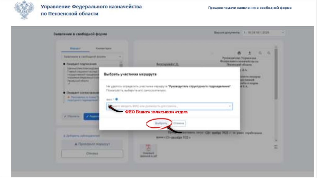 Процесс подачи заявления в свободной формеФИО Вашего начальника отдела