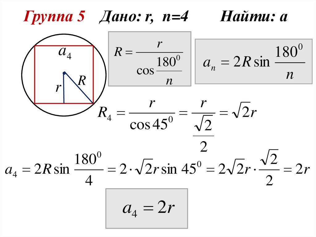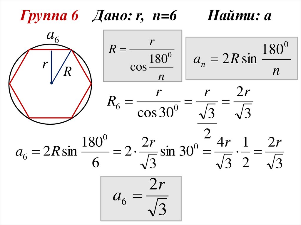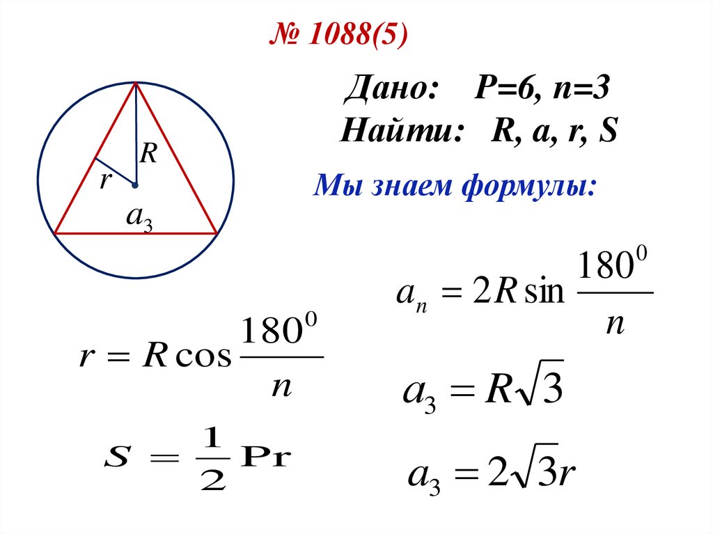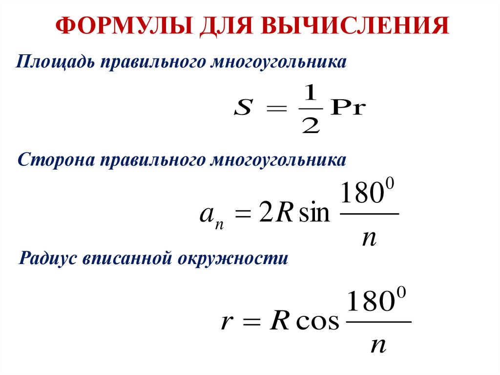 ФОРМУЛЫ ДЛЯ ВЫЧИСЛЕНИЯПлощадь правильного многоугольника