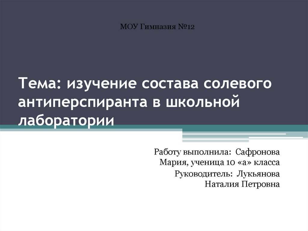 1. Тема: изучение состава солевого антиперспиранта в школьной лаборатории