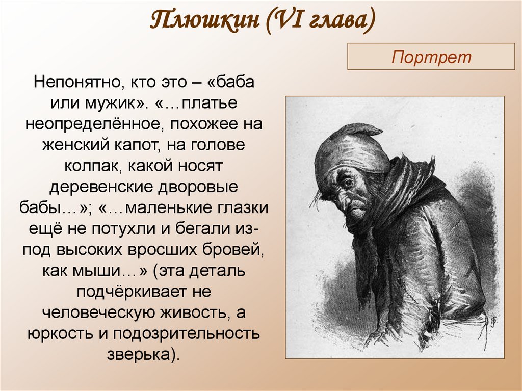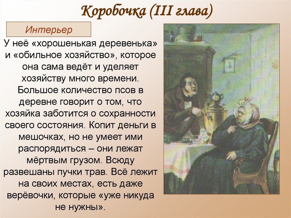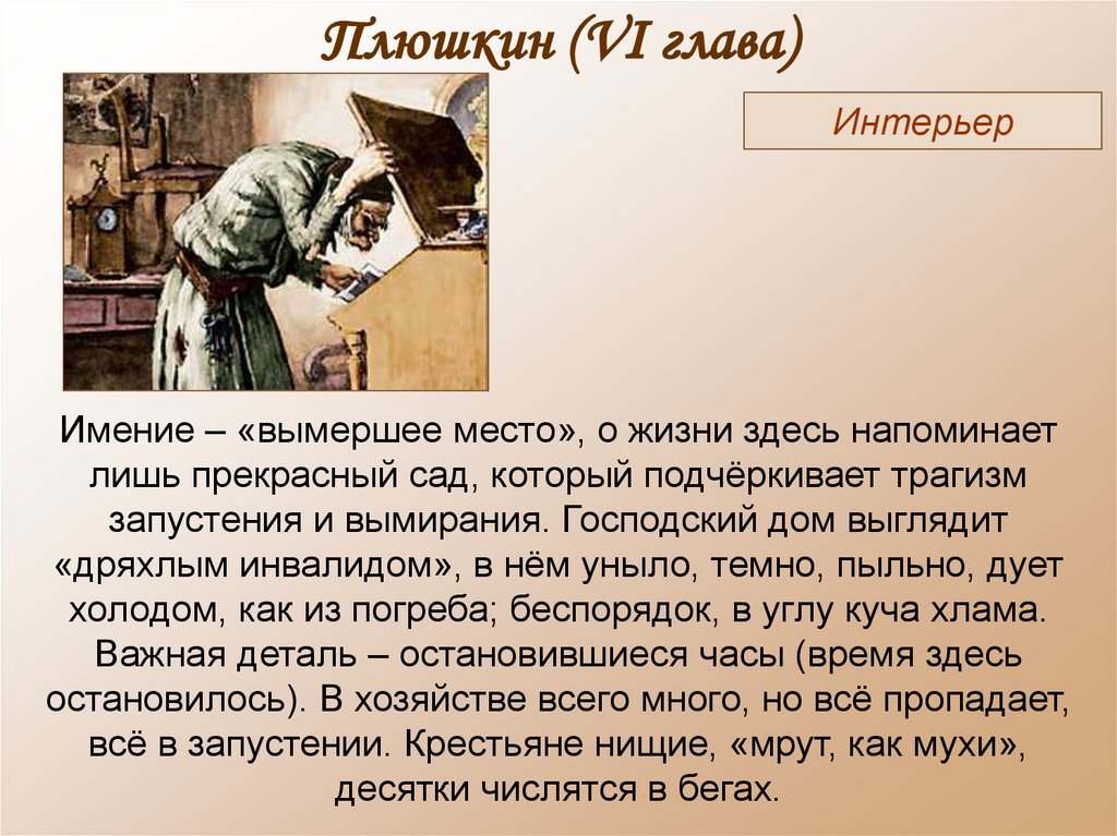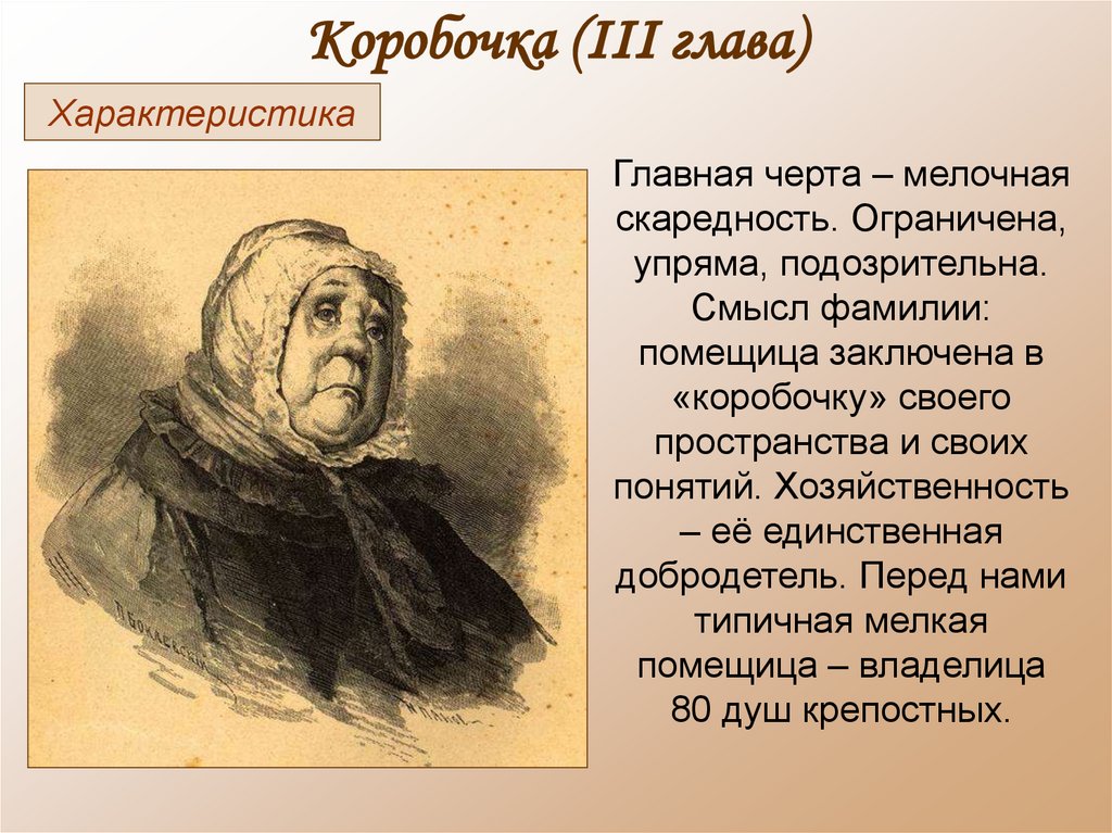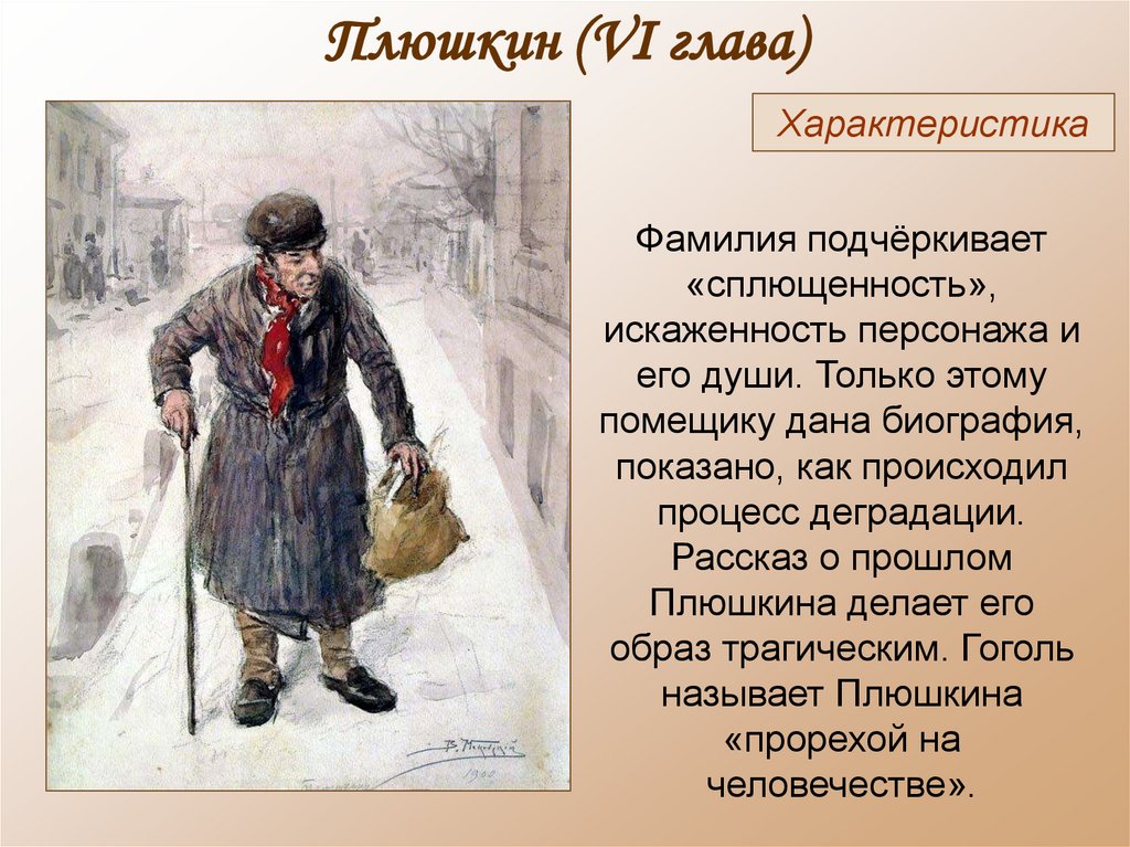 крепколобую хозяйку Коробочку, ни похожего на помещикакулака Собакевича. На примере истории жизни Плюшкина