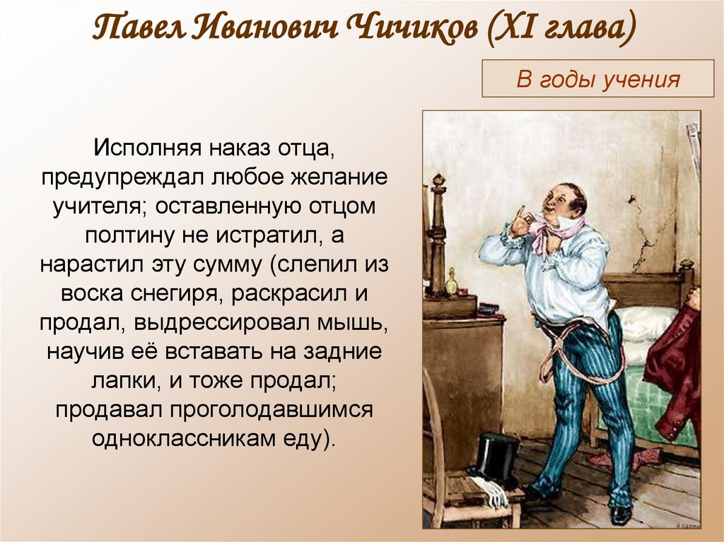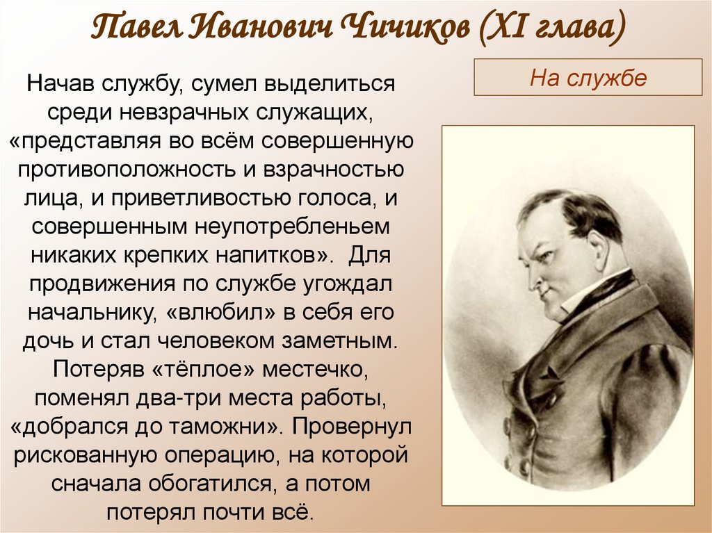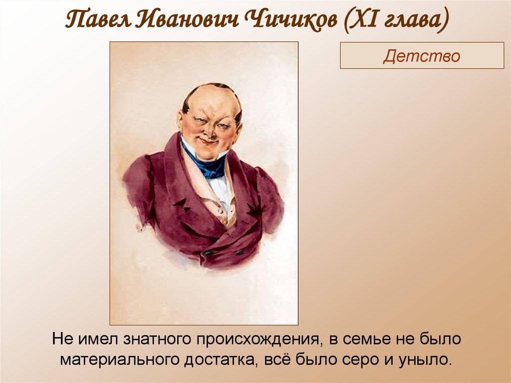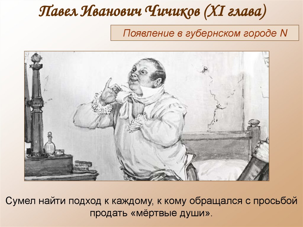 Павел Иванович Чичиков (XI глава)Появление в губернском городе N
