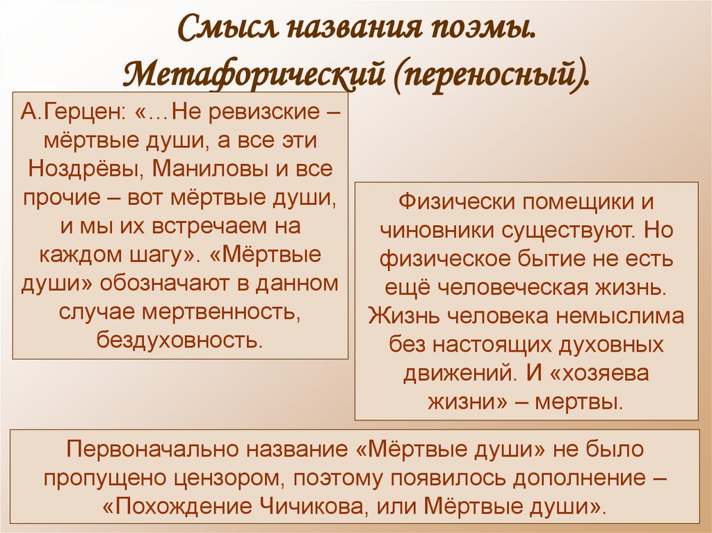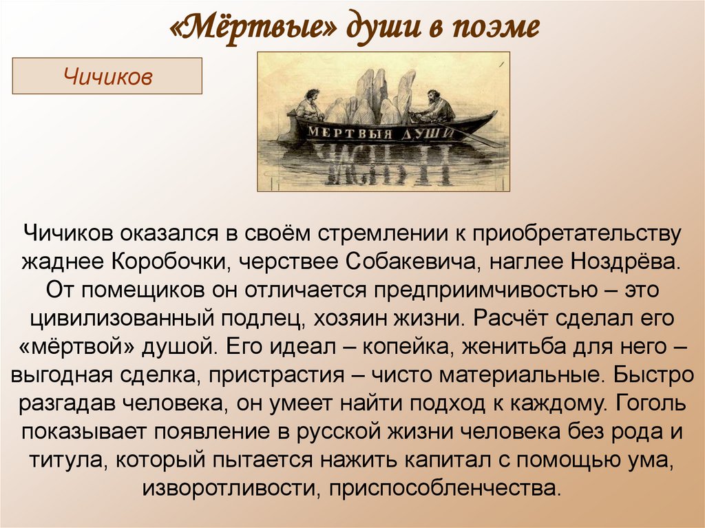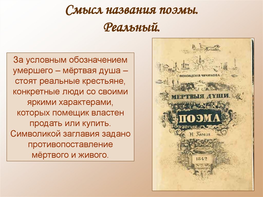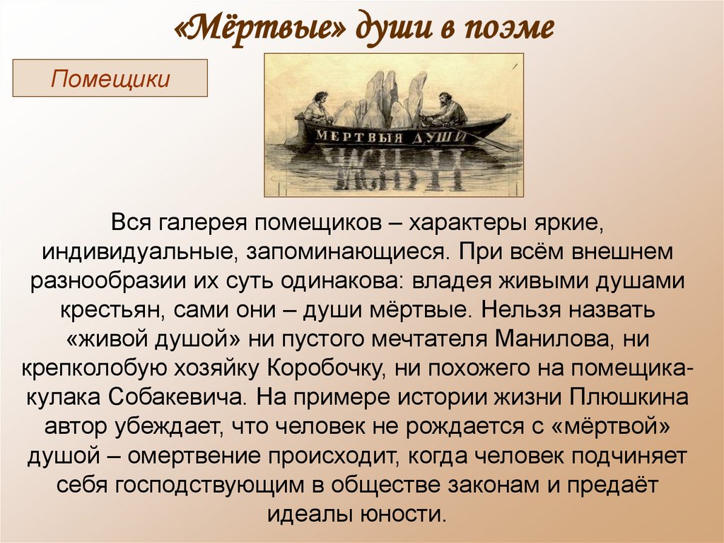 крестьян, сами они – души мёртвые. Нельзя назвать