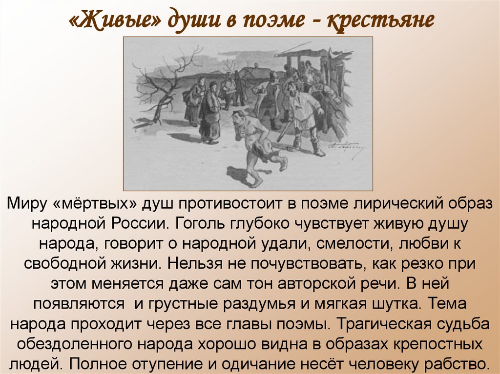 «Живые» души в поэме - крестьянеМиру «мёртвых» душ противостоит в поэме лирический образ