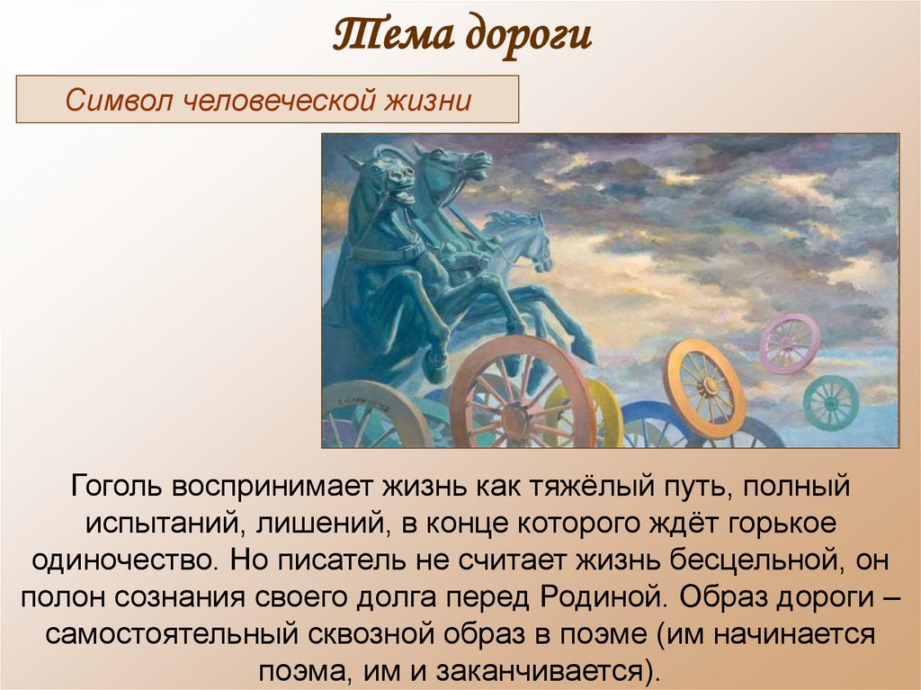 Гоголь воспринимает жизнь как тяжёлый путь, полный
