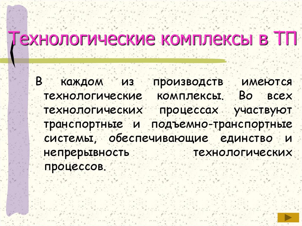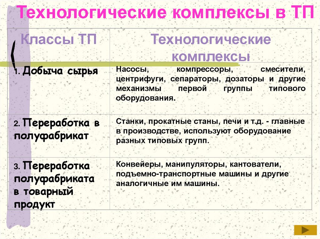 Технологические комплексы в ТПКлассы ТП