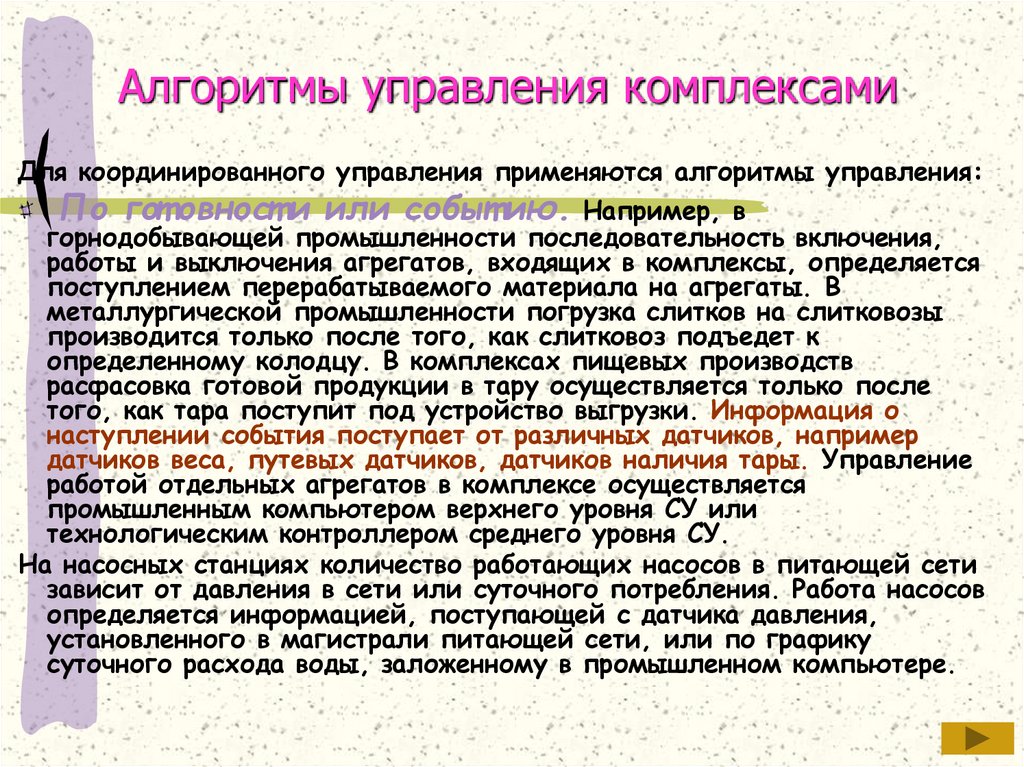 Алгоритмы управления комплексами