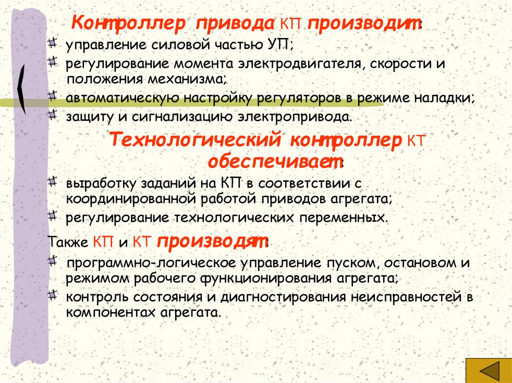 УП, программируемыми контроллерами приводов КП.