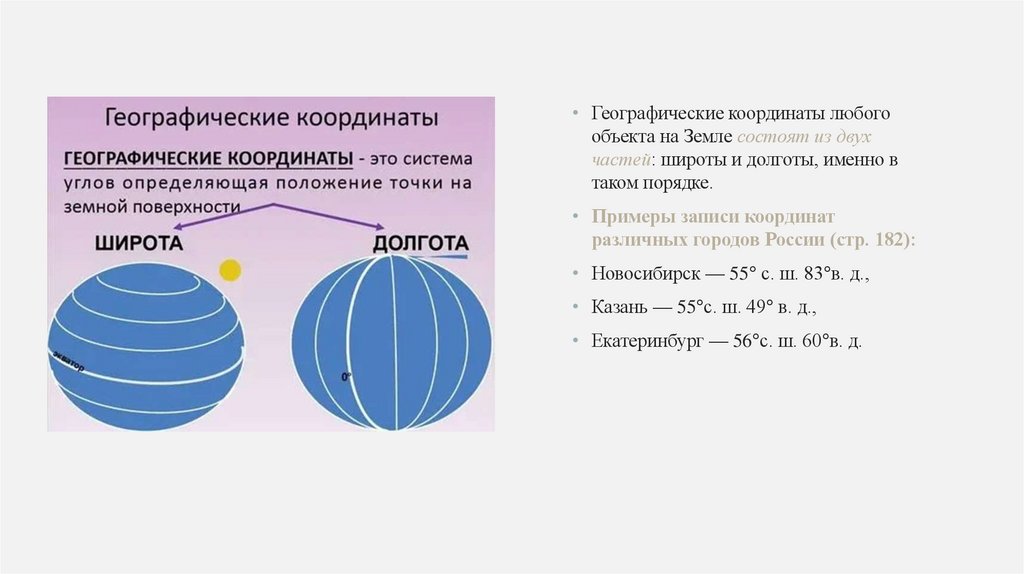 • Новосибирск — 55° с. ш. 83°в. д.,
