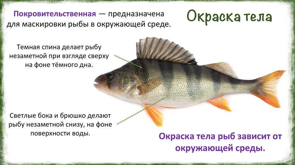 Покровительственная — предназначенадля маскировки рыбы в окружающей среде.
