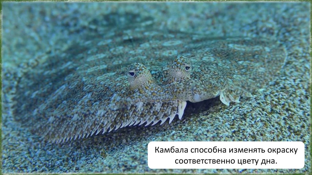 Камбала способна изменять окраскусоответственно цвету дна.