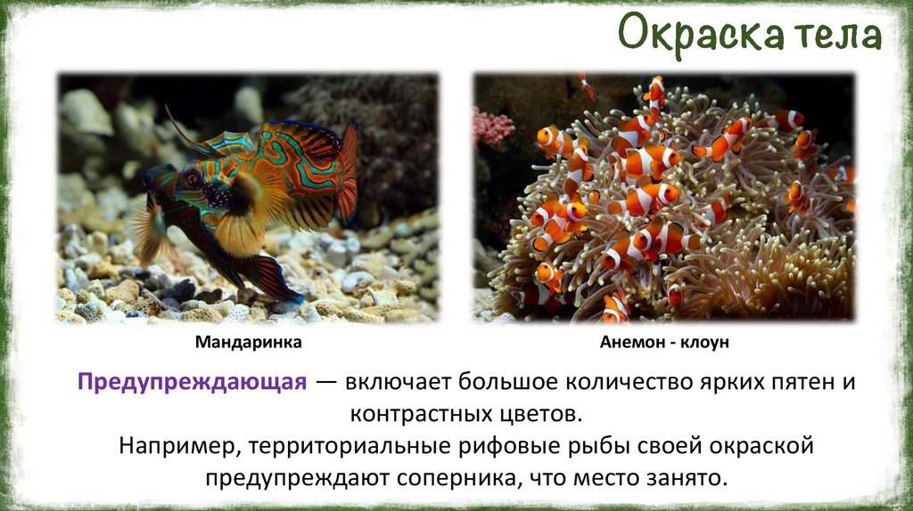 Например, территориальные рифовые рыбы своей окраской