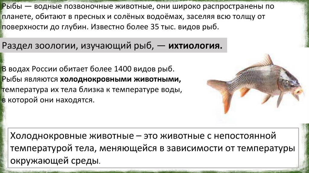 Рыбы являются холоднокровными животными,