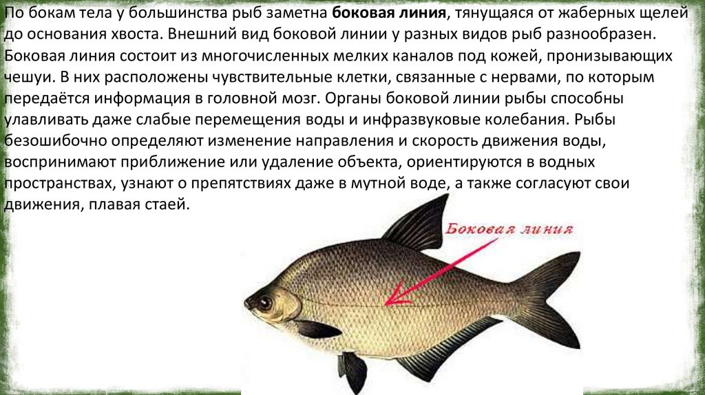 Боковая линия — это чувствительный орган у рыб.Образована каналами,