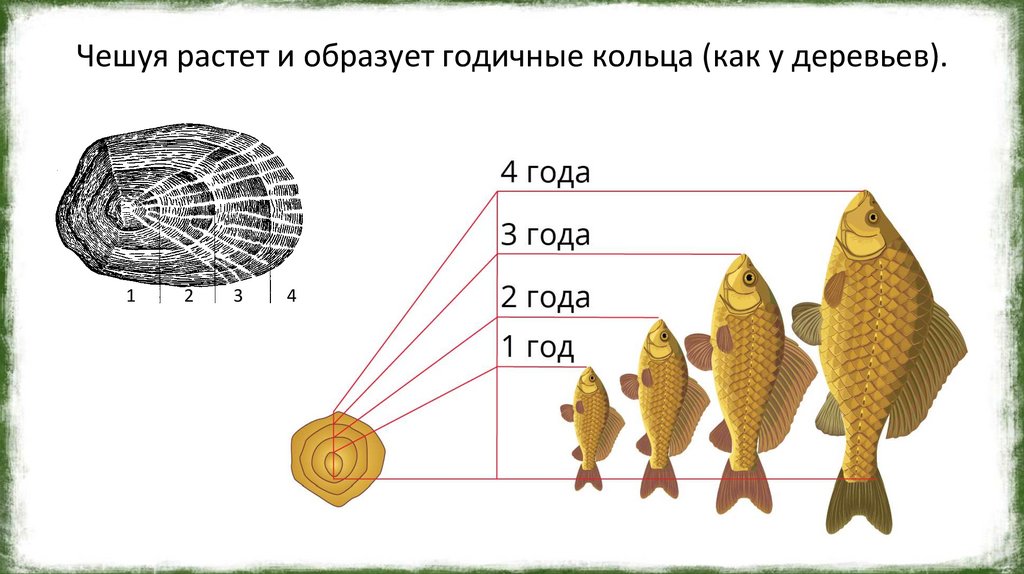 Чешуя растет и образует годичные кольца (как у деревьев).1