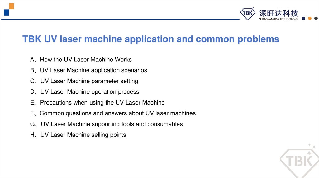 A、How the UV Laser Machine Works1.UV laser machine wavelength355-405nm(TBK958Z、TBK958ZE、TBK958ZU、TBK958ZP)