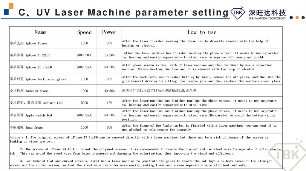 B、UV Laser Machine application scenariosMobile phone repair industry
