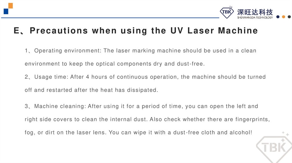E、Precautions when using the UV Laser Machine