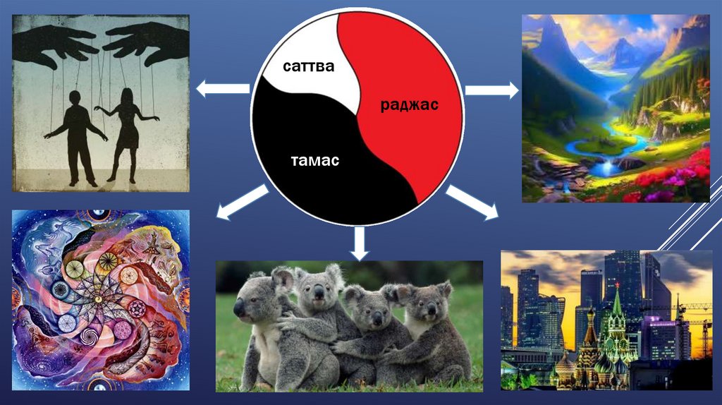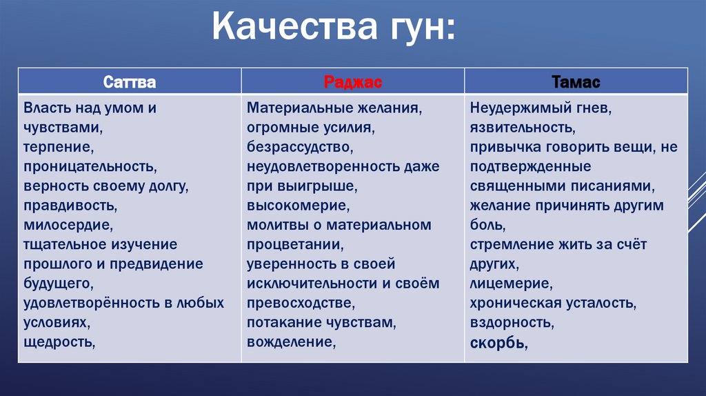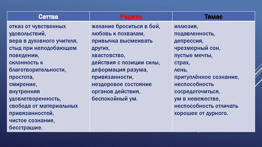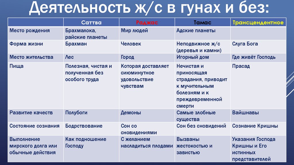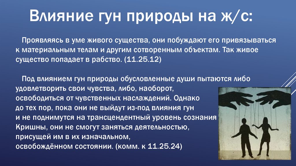 Влияние гун природы на ж/с:Проявляясь в уме живого существа, они побуждают его привязываться