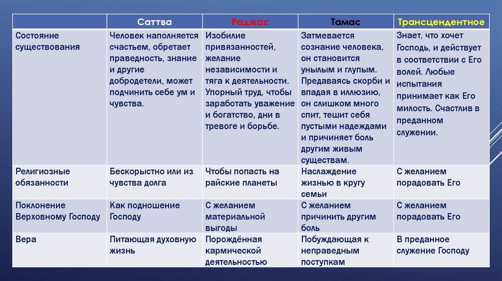 поклоняться Верховному Господу, победить гуны страсти и невежества, имея